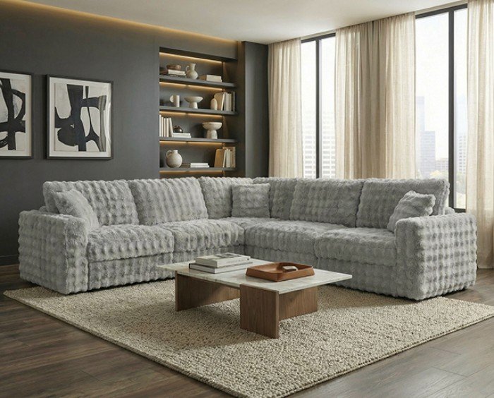 - Modular Sectional113″W X 113″D X 39.4″H (SEAT HT: 20.5″, SEAT DP: 23.6″)
